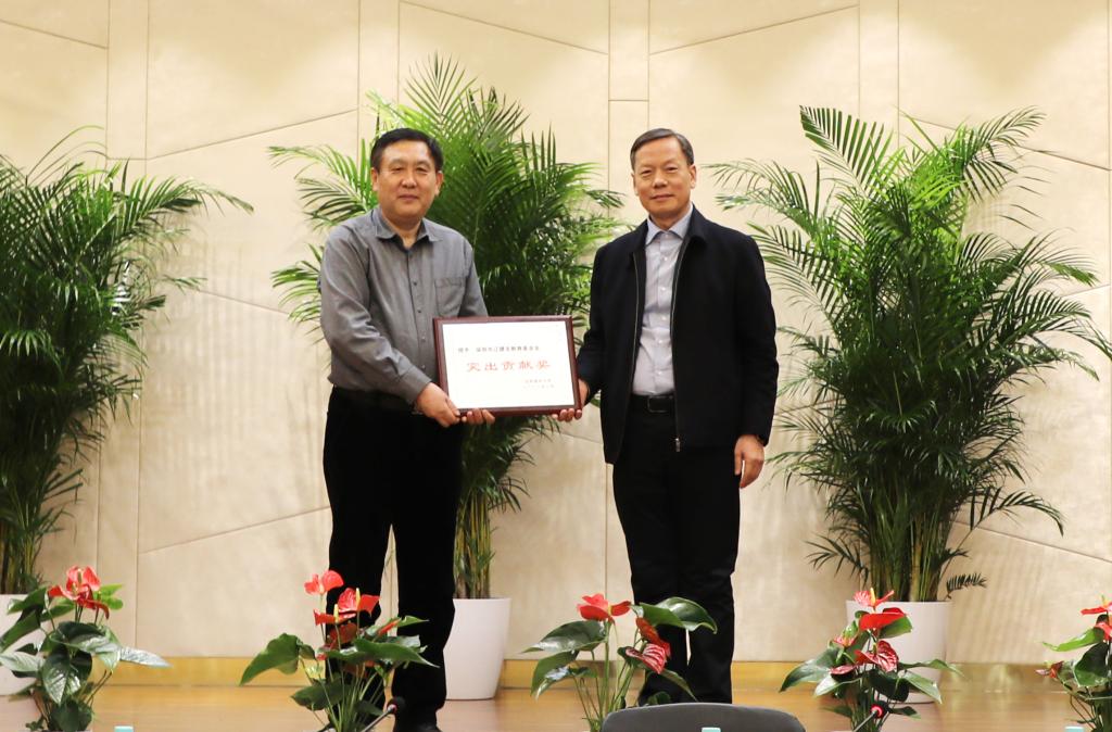 会前,董玉宽会见了校友陈志列,就学校的发展建设和国家特种计算机工程技术研究中心沈阳分中心建设等情况进行了深入交流。会上,董玉宽代表学校向校友陈志列颁授“建大楷模”荣誉称号奖章,向辽建友教育基金会颁发“突出贡献奖”奖牌。